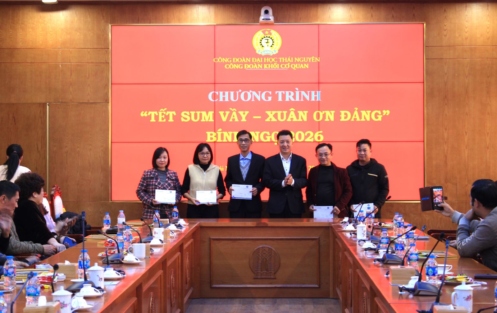 Nhân dịp Tết Nguyên đán Bính Ngọ 2026, Công đoàn ĐHTN trao 50 suất quà, tổng trị giá 50 triệu đồng cho đoàn viên công đoàn là cán bộ, viên chức, người lao động có hoàn cảnh khó khăn. Đồng thời, Công đoàn Khối cơ quan ĐHTN trao 23 suất quà với tổng trị giá 23 triệu đồng nhằm kịp thời động viên, chia sẻ, giúp đoàn viên yên tâm công tác, đón Tết vui tươi, đầm ấm.