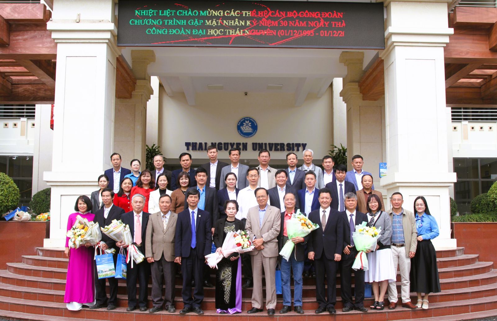 Các đại biểu chụp ảnh lưu niệm tại buổi gặp mặt ôn lại truyền thống 30 năm xây dựng và phát triển của Công đoàn Đại học Thái Nguyên