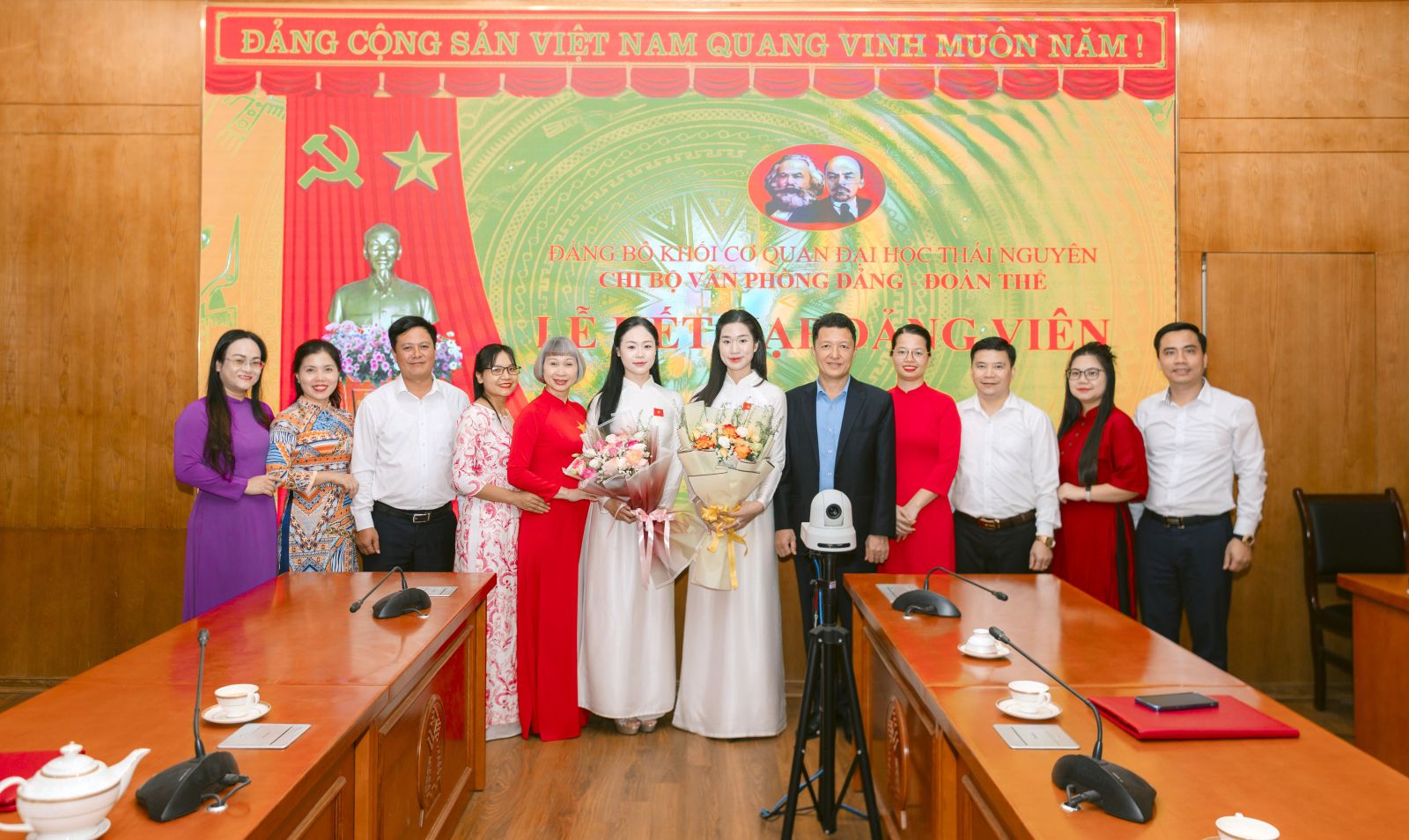 Đại biểu Văn phòng Đảng – Đoàn thể Đại học Thái Nguyên chụp ảnh lưu niệm tại Lễ kết nạp đảng viên mới