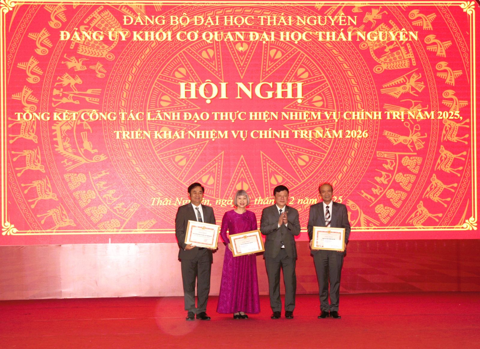 Nhân dịp này, Đảng ủy Khối Cơ quan Đại học Thái Nguyên đã tặng Giấy khen cho 04 tổ chức đảng, 78 đảng viên "Hoàn thành xuất sắc nhiệm vụ" năm 2025./.