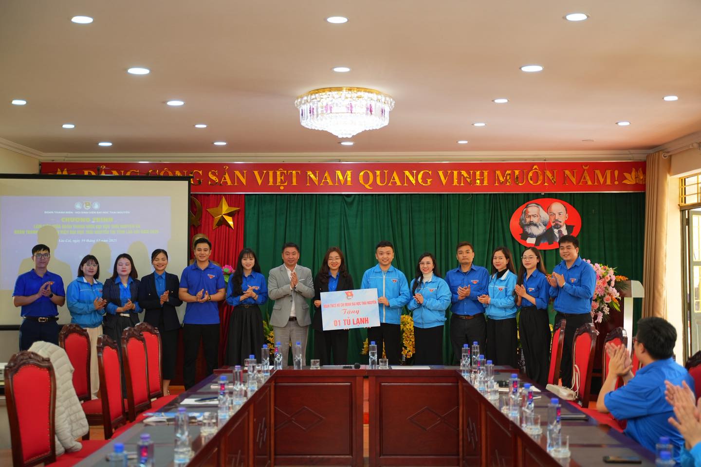 Đoàn Thanh niên Đại học Thái Nguyên tặng quà lưu niệm cho Đoàn Thanh niên - Hội Sinh viên Phân hiệu Đại học Thái Nguyên tại tỉnh Lào Cai.