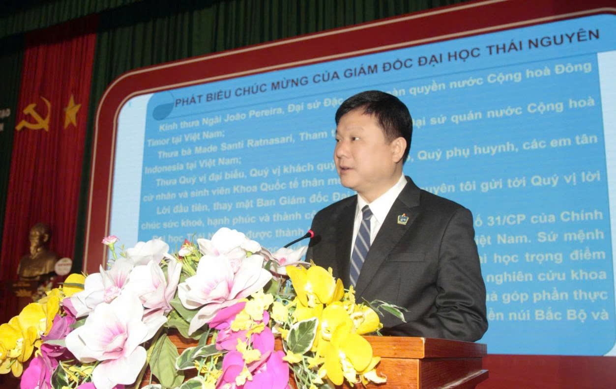 Photo: Assoc. Prof. Hoang Van Hung, Deputy Secretary of the Party Committee and President of Thai Nguyen University, is delivering his speech.