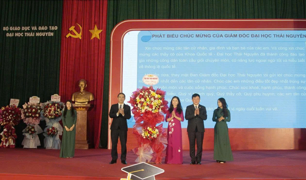 Assoc. Prof. Hoang Van Hung, Deputy Secretary of the Party Committee and President represented Thai Nguyen University, together with leaders of the Office, functional departments, centers, and the International School.