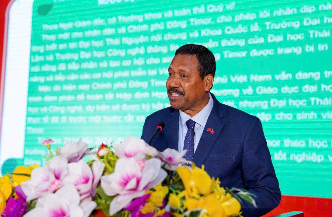 On behalf of the Government and people of Timor-Leste, Ambassador João Pereira expressed profound appreciation to Thai Nguyen University—particularly the International School, the University of Agriculture and Forestry, and the University of Information and Communication Technology—for welcoming Timorese students and providing them opportunities to acquire knowledge, skills, and access to new avenues of development in Viet Nam. From 2014 to 2025, 80 Timorese students pursued studies at various member institutions of Thai Nguyen University, with more than 60 having graduated and returned to contribute to their national development. He affirmed that Thai Nguyen University has played a meaningful role in fostering the intellectual capacity of Timorese youth as part of Viet Nam’s broader support for Timor-Leste’s development efforts, which also contribute to Timor-Leste’s aspiration to become the eleventh member of ASEAN.