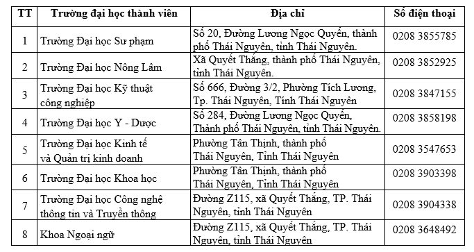 Liên hệ nộp hồ sơ và ôn tập tại các trường đại học thành viên của Đại học Thái Nguyên theo số điện thoại và địa chỉ sau: