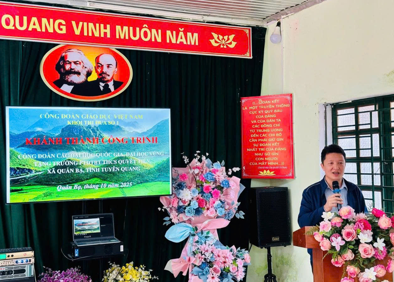 “This charitable activity is not only a material contribution but also a meaningful expression of the affection and social responsibility demonstrated by the trade unions of national and regional universities in caring for and accompanying students in disadvantaged areas. We hope that this project will help teachers and students of Quyet Tien School improve their study and living conditions.”