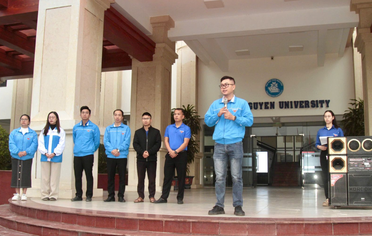 Photo: Mr. Nguyen Huy Hoang, Deputy Secretary in charge of the Youth Union of Thai Nguyen University, delivering the launching address.