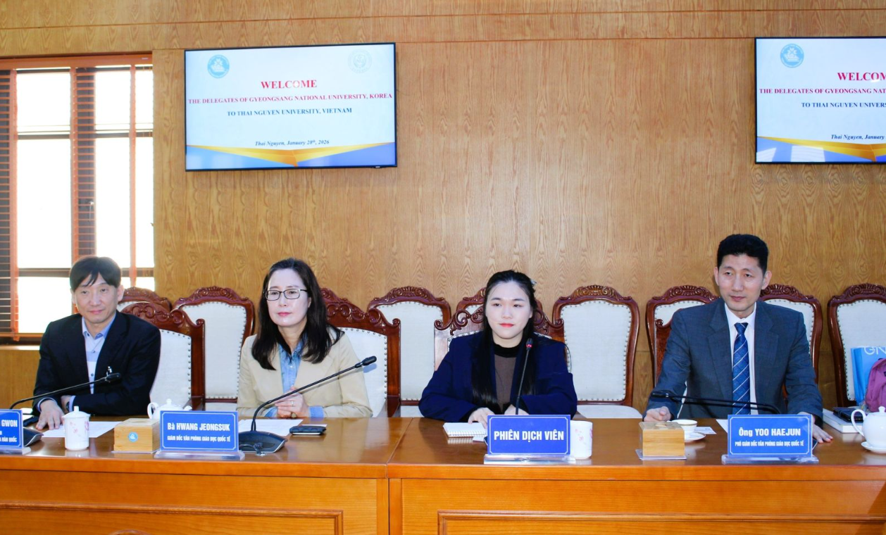 On January 28th, Thai Nguyen University (TNU) held a working session with a delegation from Gyeongsang National University (GNU), Republic of Korea.
