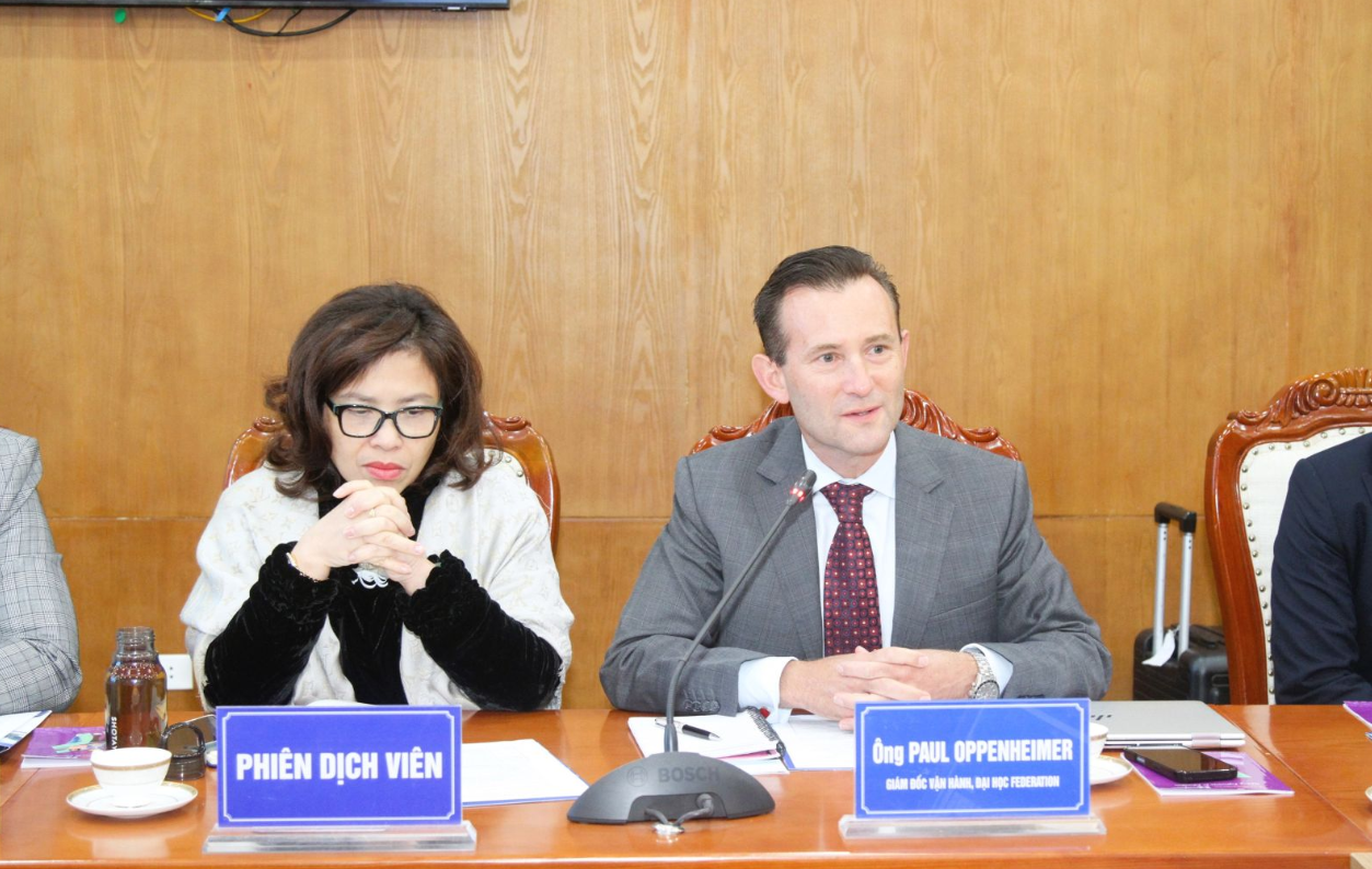 On the morning of January 23rd, Thai Nguyen University (TNU) held an official working session with a delegation from Federation University Australia, led by Mr. Paul Oppenheimer, Chief Operating Officer of Federation University, who served as Head of the delegation.