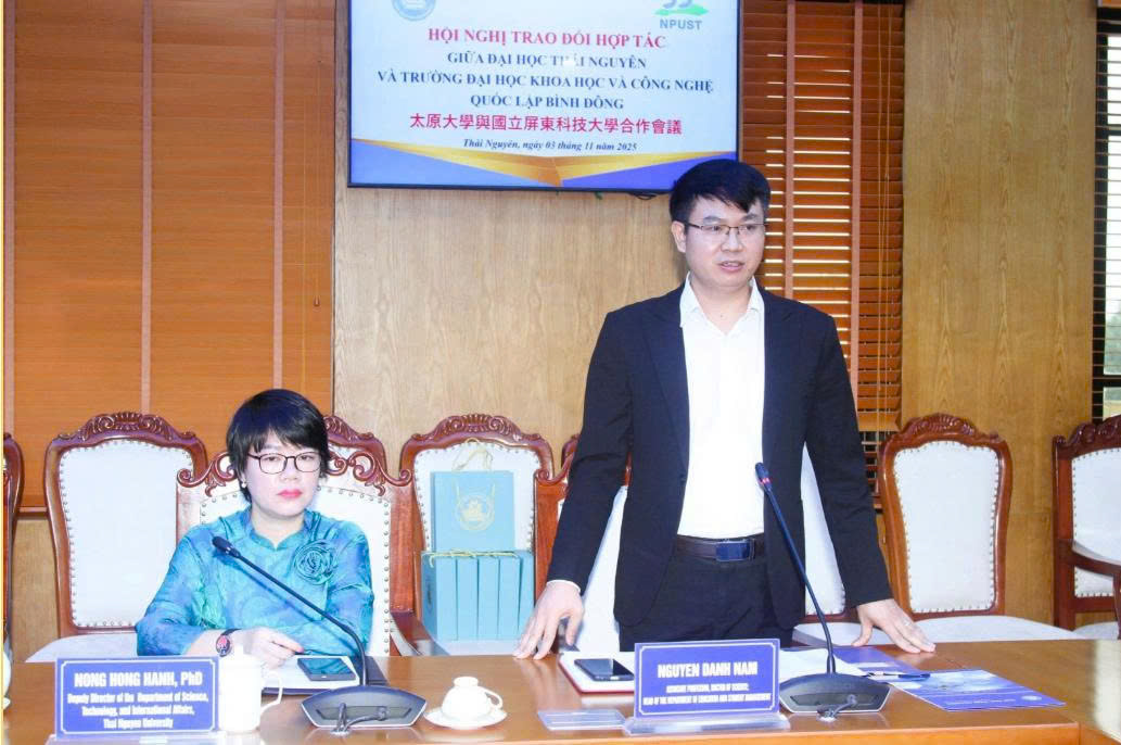 Prof. Dr. Chin-Lung Chang expressed his gratitude for the warm welcome extended by TNU and provided an overview of NPUST and its cooperation proposals. He shared that the university focuses on tropical agriculture, animal husbandry, aquaculture, veterinary medicine, and ecological conservation, aiming toward sustainable development aligned with the United Nations’ Sustainable Development Goals and the transition to an ecological and circular economy. NPUST comprises several colleges and institutes in Agriculture, Engineering, Management, Humanities and Social Sciences, Veterinary Medicine, and International Studies. It offers English-taught and international programs and consistently ranks among Taiwan’s top universities for “sustainability.” In 2024, NPUST was ranked among the Top 101–200 universities worldwide and No. 1 among Taiwan’s science and technology universities in the Times Higher Education University Impact Rankings.