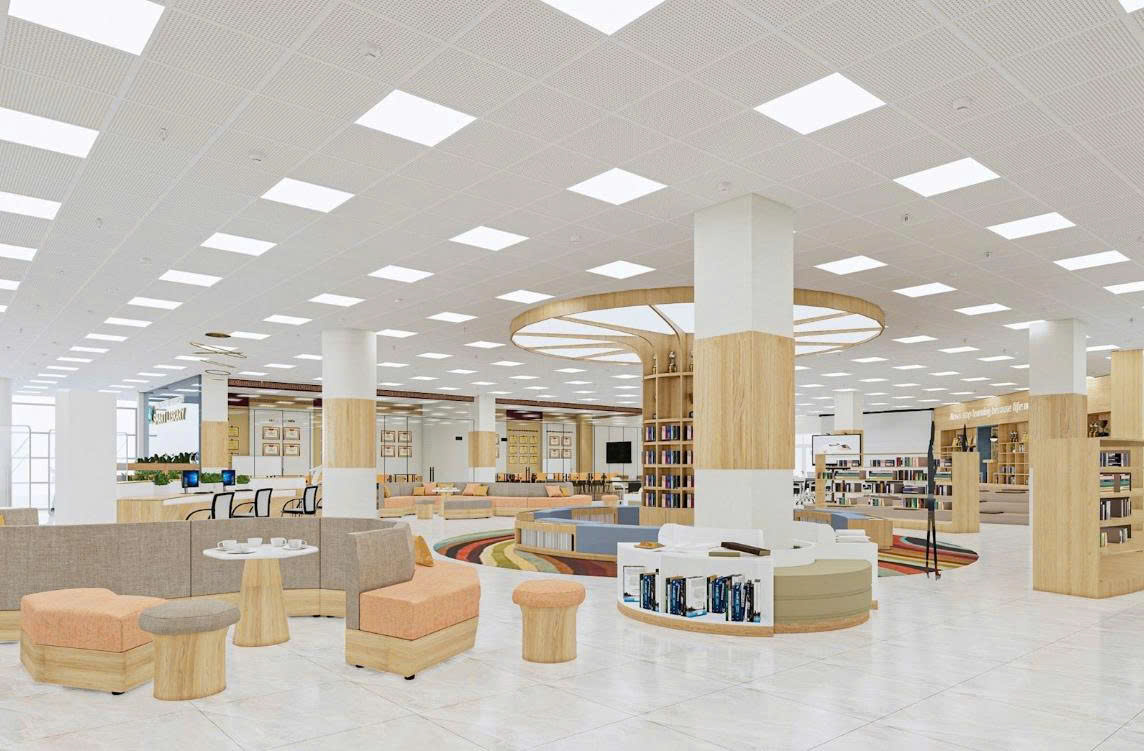 The Digital Center is a spacious, modern, fully equipped building, with a total usable area of more than 10,000 m². The Center comprises a system of well-designed classrooms, discussion rooms, quiet study areas, and international-standard multimedia rooms. It also includes dedicated working spaces for lecturers at Thai Nguyen University and postgraduate learners.