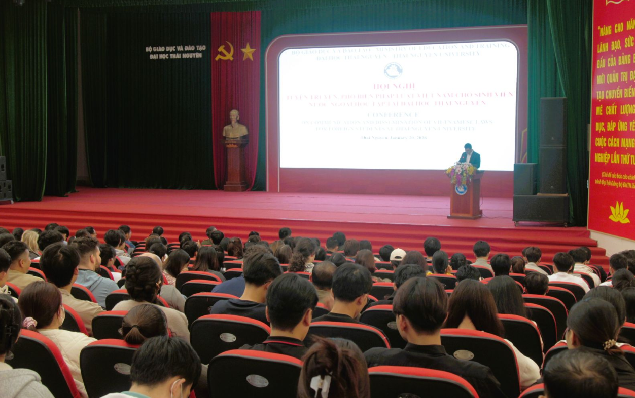 On January 20th, Thai Nguyen University (TNU), in coordination with the Immigration Management Division and the Internal Political Security Division of the Thai Nguyen Provincial Police, organized a conference on the dissemination of Vietnamese law for international students currently studying at Thai Nguyen University.