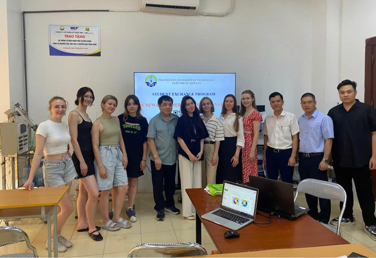 Within the framework of cooperation and the implementation of the Memorandum of Understanding between Thai Nguyen University (TNU) and Moscow Power Engineering Institute (MPEI), Russian Federation, the first group of eight exchange students from MPEI successfully completed a two-week exchange program from June 18 to July 2, 2025, at the University of Technology – Thai Nguyen University.