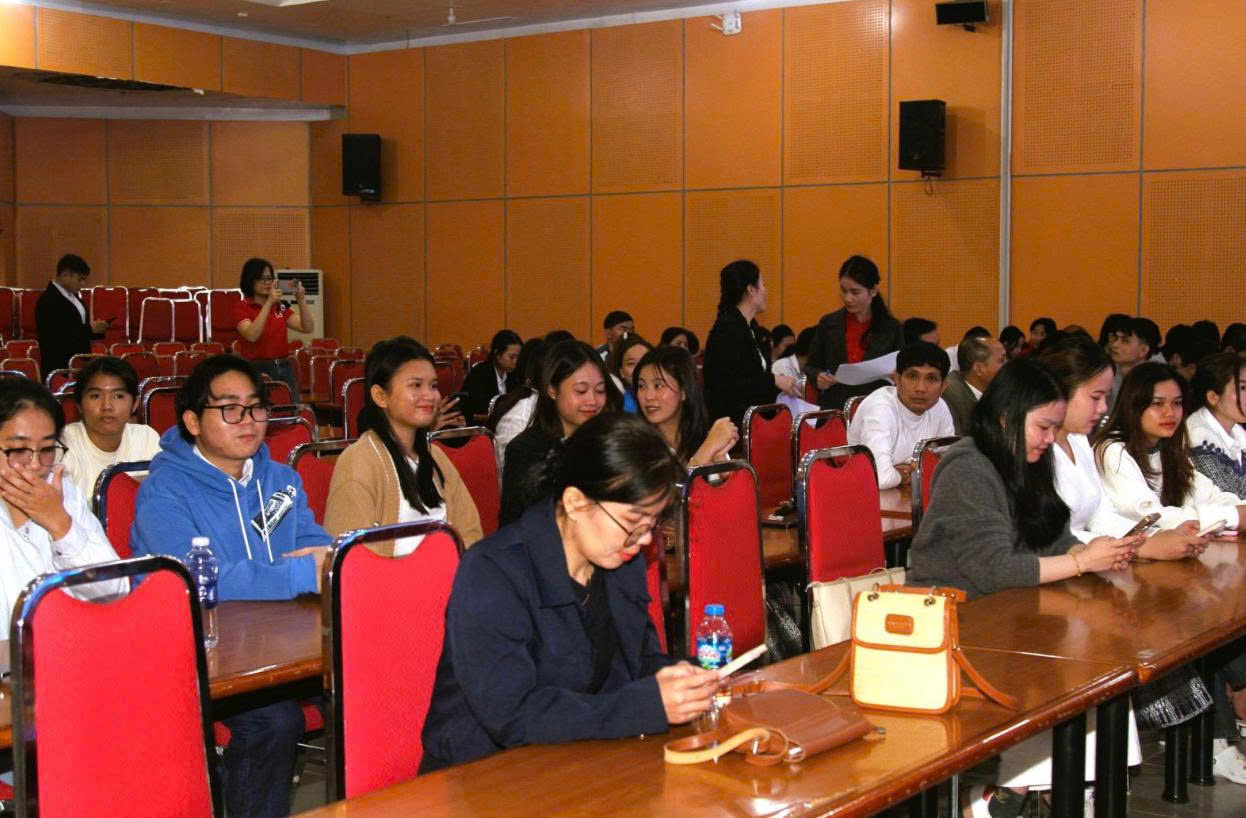Representatives of Star Telecom (Unitel) gave an overview of the company. Unitel is a joint venture between Viettel Group (Vietnam) and Lao Asia Telecom (Laos), and is currently the leading telecommunications operator in Laos. After more than 16 years of operation, Unitel is entering an expansion phase and expects to recruit about 300 employees annually in fields such as Information Technology, Electrical – Electronic – Telecommunications Engineering, Economics, Business Administration, Marketing, Finance – Accounting, and Vietnamese and Lao Languages.