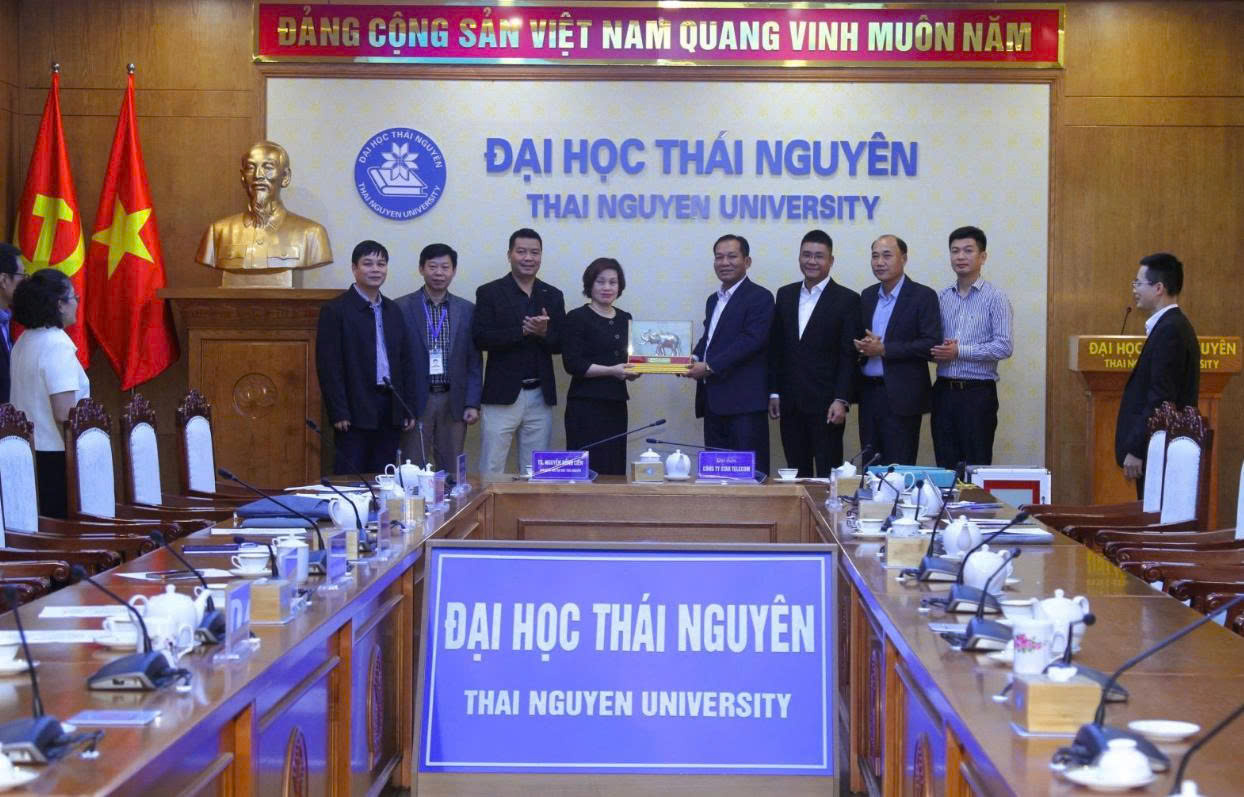 Photo: The Star Telecom delegation presents a souvenir to Thai Nguyen University.