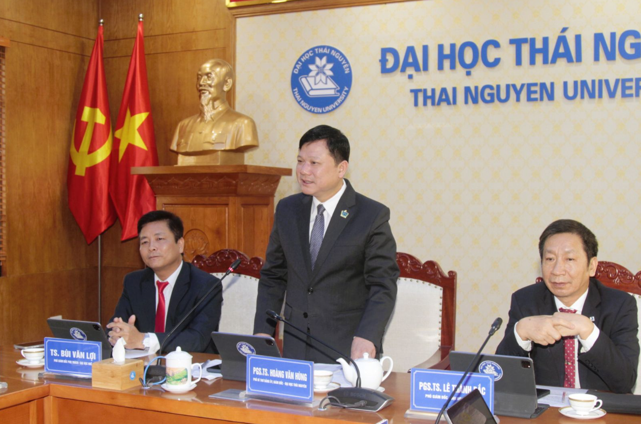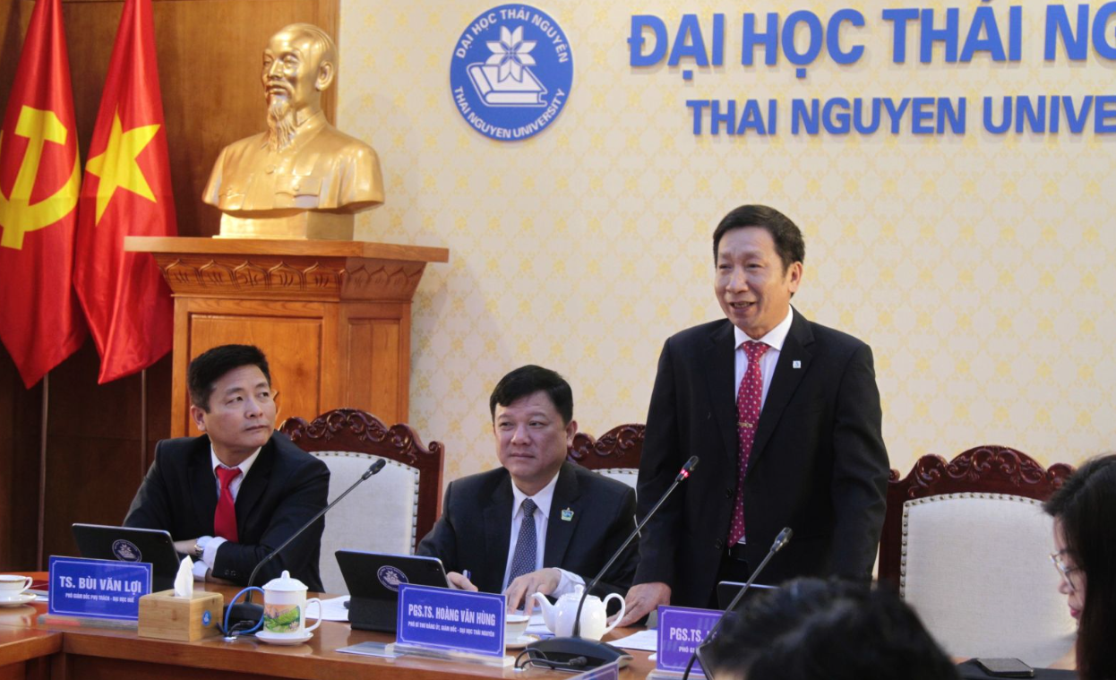 Photo. Assoc. Prof. Hoang Van Hung, Deputy Secretary of the Party Committee and President of Thai Nguyen University, delivers remarks at the conference.
