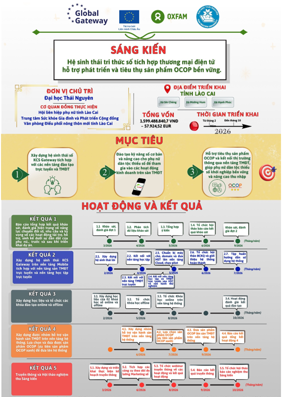 Implemented from February to October 2026 in the communes of Sin Cheng, Muong Hum, and Hanh Phuc (Lao Cai Province), the project aims to enhance capacity and promote the economic empowerment of women, particularly ethnic minority women. This will be achieved through the development of an integrated digital ecosystem combining online training, e-commerce, and gender-based violence alert mechanisms.