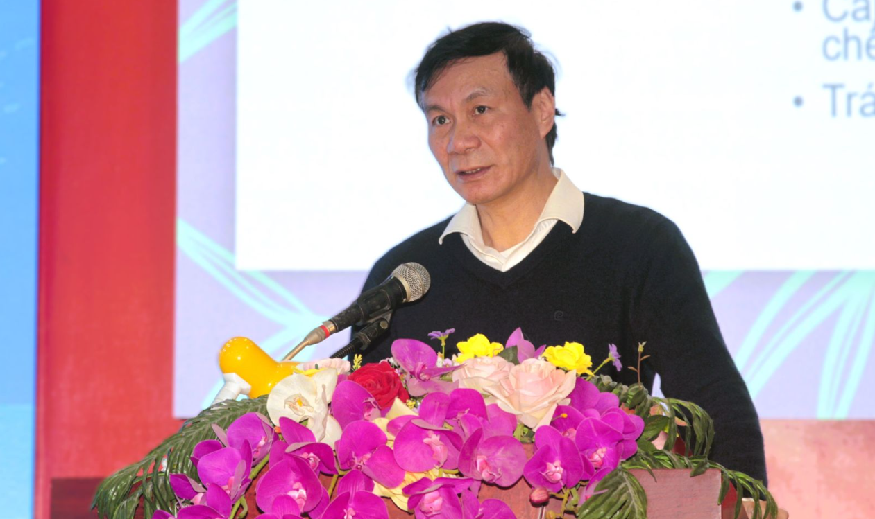 Photo: Assoc. Prof. Hoang Minh Son, President of Vietnam National University, Hanoi, delivers the keynote address.