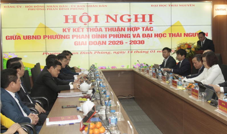 On January 14, at the headquarters of the Party Committee – People’s Council – People’s Committee – Fatherland Front Committee of Phan Dinh Phung Ward, the Party Committee, People’s Council and People’s Committee of Phan Dinh Phung Ward, in coordination with Thai Nguyen University, held a conference to sign a Cooperation Agreement for the 2026–2030 period.