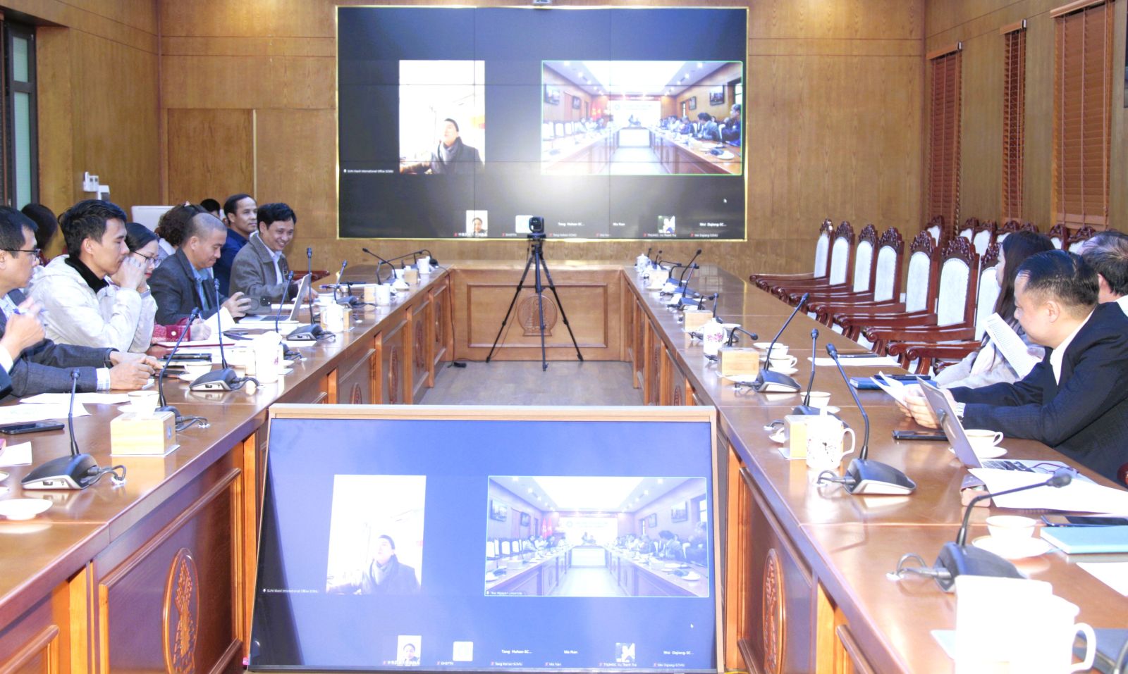 Tham dự buổi làm việc, Đại học Dân tộc Trung Nam có bà Tôn Hiểu Lệ, Trưởng phòng Hợp tác và Giao lưu quốc tế, Viện trưởng Học viện Giáo dục Quốc tế, cùng đại diện lãnh đạo các học viện thành viên.