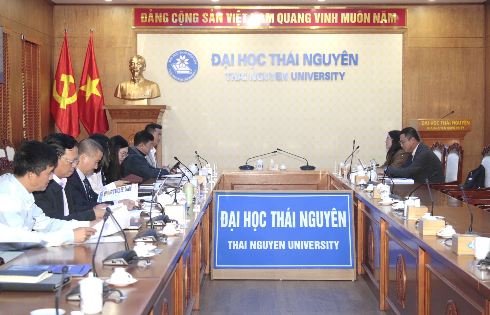 Phát biểu tại buổi làm việc, PGS.TS. Hoàng Văn Hùng, Phó Bí thư Đảng ủy, Giám đốc ĐHTN bày tỏ vui mừng được đón tiếp và làm việc với Đoàn; đồng thời giới thiệu khái quát về ĐHTN - đại học vùng theo mô hình hai cấp, đa ngành, đa lĩnh vực, là trung tâm đào tạo, nghiên cứu khoa học và chuyển giao công nghệ lớn của khu vực Trung du và miền núi Bắc Bộ cũng như cả nước.