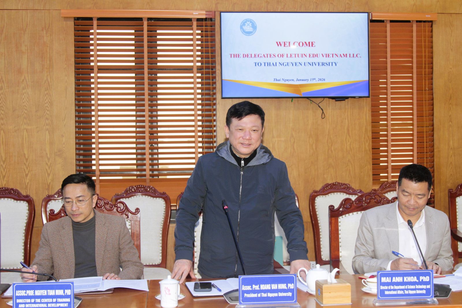 Chiều 15/1, PGS.TS. Hoàng Văn Hùng, Phó Bí thư Đảng ủy, Giám đốc Đại học Thái Nguyên (ĐHTN) chủ trì buổi tiếp và làm việc với Công ty TNHH Letuin Edu Việt Nam nhằm trao đổi các nội dung hợp tác trong lĩnh vực đào tạo bán dẫn và ngoại ngữ tiếng Hàn.