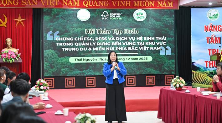 Hội thảo được tổ chức nhằm cập nhật các yêu cầu, xu hướng mới trong quản lý rừng bền vững; giới thiệu hệ thống chứng chỉ rừng FSC, tiêu chuẩn quản lý rừng vùng cho chủ rừng nhỏ (RFSS), cùng các giải pháp mới của FSC liên quan đến dịch vụ hệ sinh thái, các-bon rừng và yêu cầu EUDR của Liên minh châu Âu. Đồng thời, đây là diễn đàn chuyên môn quan trọng để tăng cường trao đổi học thuật, chia sẻ kinh nghiệm và nhận diện các cơ hội triển khai quản lý rừng bền vững, phát triển kinh tế lâm nghiệp xanh tại khu vực Trung du và Miền núi phía Bắc.