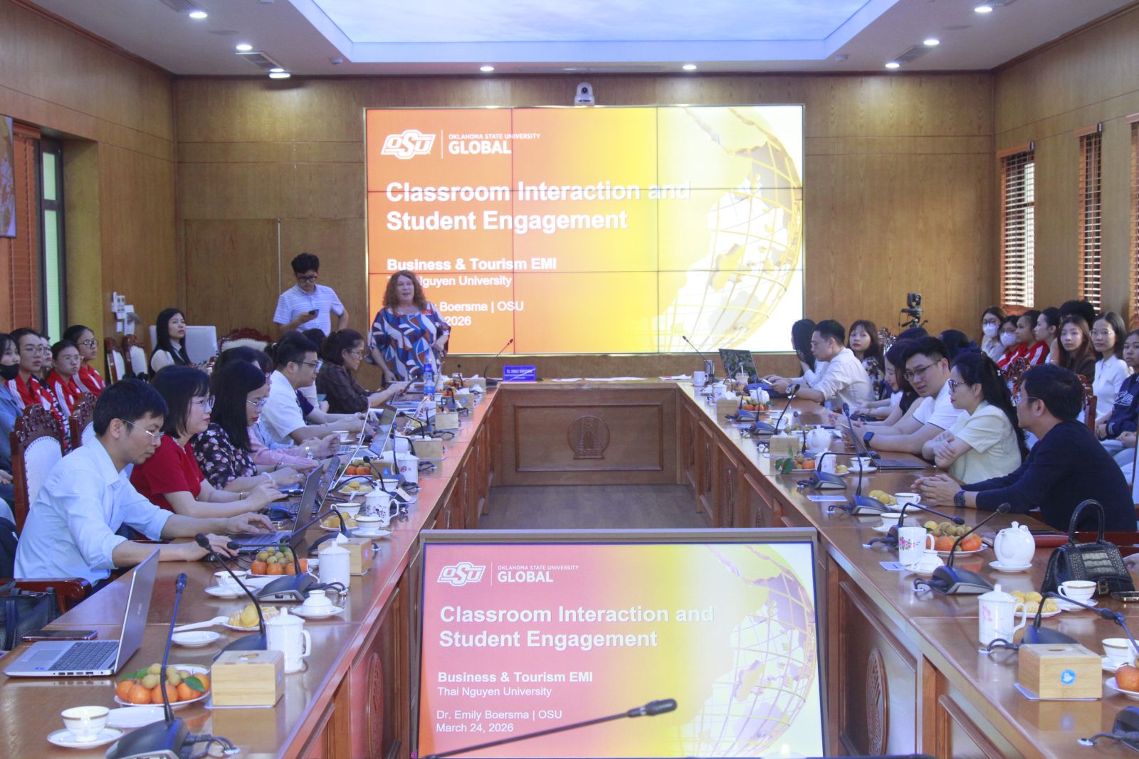 Tham gia Tọa đàm, các giảng viên đã được TS. Emily Boersma, Giám đốc Trung tâm Ngôn ngữ Anh và Giao thoa Văn hóa, Đại học Bang Oklahoma, Hoa Kỳ trao đổi về các chủ đề chính: Tương tác trong lớp học và nâng cao mức độ tham gia của sinh viên; Giảng dạy chuyên ngành bằng tiếng Anh; kinh nghiệm tổ chức lớp học theo hướng lấy người học làm trung tâm.
