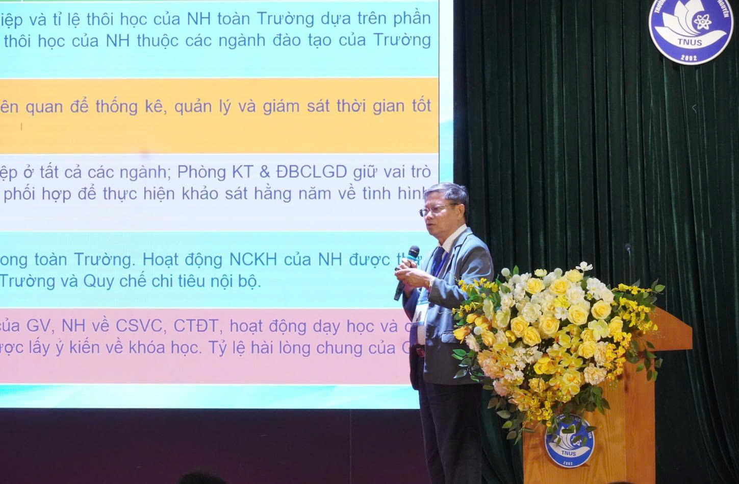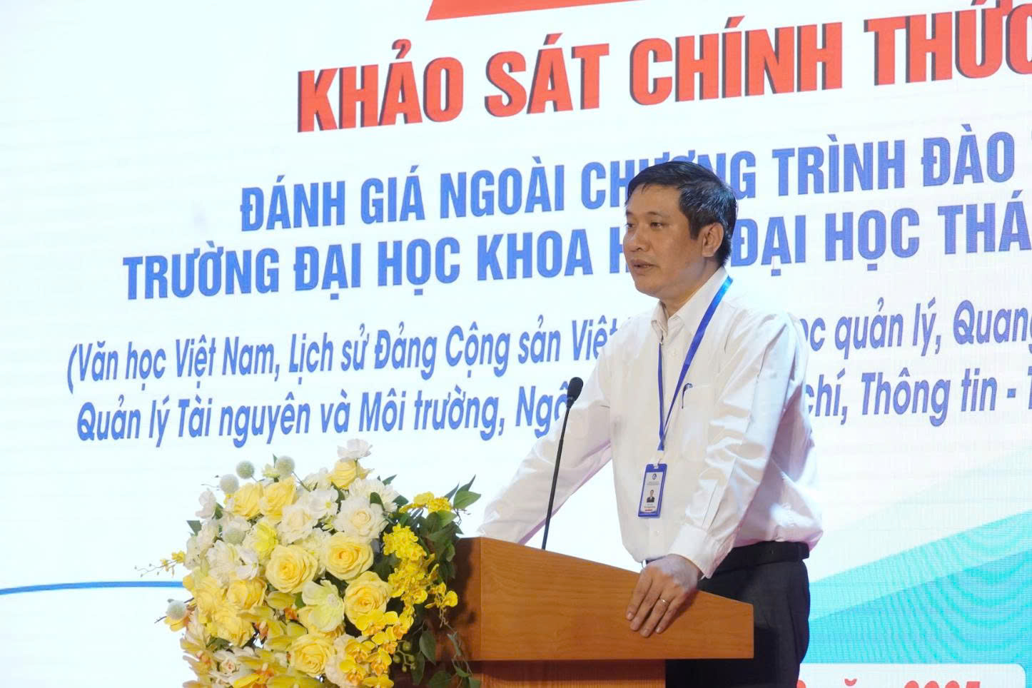 Đại diện Lãnh đạo Trường Đại học Khoa học, PGS.TS Nguyễn Văn Đăng gửi lời cảm ơn chân thành tới Trung tâm KĐCLGD Thăng Long và Đoàn chuyên gia Đánh giá ngoài, các nhà tuyển dụng, cán bộ viên chức, giảng viên và sinh viên đã đồng hành cùng Nhà trường trong suốt những ngày qua với tinh thần làm việc nghiêm túc, khoa học và trách nhiệm. Những đánh giá, góp ý và khuyến nghị của đoàn chuyên gia đối với 10 CTĐT có ý nghĩa thiết thực đối với Nhà trường trong việc nâng cao chất lượng giáo dục. Đồng thời khẳng định Trường Đại học Khoa học sẽ nghiêm túc tiếp thu, xây dựng kế hoạch cải tiến cụ thể, coi đây là động lực đổi mới để khẳng định uy tín, vị thế của Nhà trường trong hệ thống giáo dục đại học tại Việt Nam.