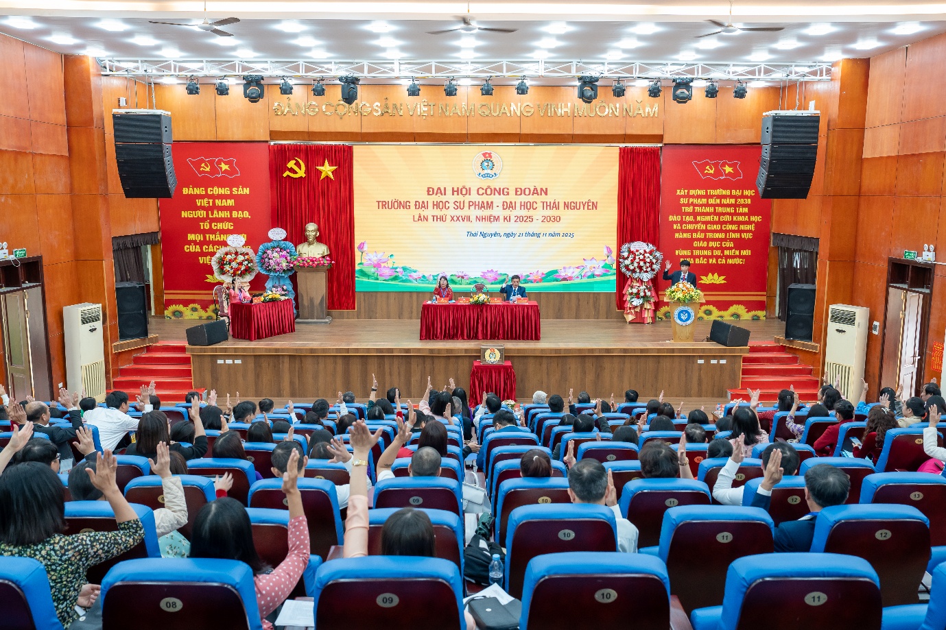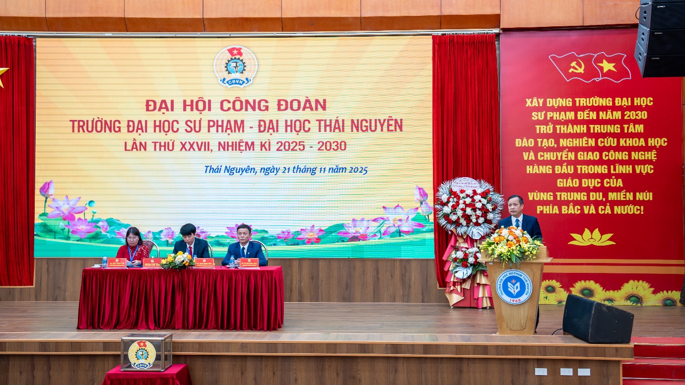 Ngày 21/11/2025, Công đoàn Trường Đại học Sư phạm - Đại học Thái Nguyên tổ chức Đại hội lần thứ XXVII, nhiệm kỳ 2025-2030. Đại hội có nhiệm vụ tổng kết việc thực hiện Nghị quyết Đại hội Công đoàn Trường khóa XXVI; xây dựng mục tiêu, nhiệm vụ, giải pháp nhiệm kỳ 2025-2030 hướng tới mục tiêu xây dựng tổ chức Công đoàn vững mạnh toàn diện, đại diện tin cậy, đồng hành và bảo vệ quyền lợi chính đáng của viên chức, người lao động; là lực lượng nòng cốt lan tỏa hệ giá trị cốt lõi và khát vọng phát triển của Nhà trường trong thời kỳ mới.
