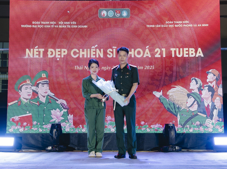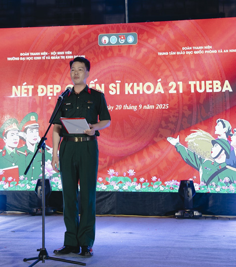 Ngày 20/9/2025, tại Sân vận động Trung tâm Giáo dục Quốc phòng và An ninh (GDQP&AN), hơn 1.600 Sinh viên khóa 21 Trường Đại học Kinh tế và Quản trị kinh doanh (TUEBA) đã cùng nhau tạo nên một đêm hội rực rỡ sắc màu với Hội thi “Nét đẹp chiến sĩ K21 TUEBA”. Đây là dấu ấn khép lại chặng đường một tháng học tập, rèn luyện quân sự đầy thử thách nhưng cũng tràn ngập kỷ luật, đoàn kết và khát vọng tuổi trẻ.