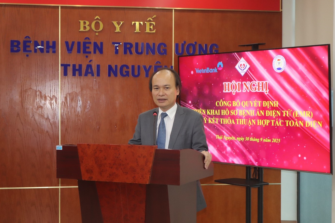 Phát biểu tại lễ ký kết, PGS.TS. Nguyễn Công Hoàng - Giám đốc Bệnh viện Trung ương Thái Nguyên bày tỏ sự trân trọng đối với mối quan hệ hợp tác bền chặt giữa hai đơn vị, đồng thời nhấn mạnh mong muốn sự phối hợp ngày càng đi vào chiều sâu, góp phần nâng cao chất lượng đào tạo, nghiên cứu và chăm sóc sức khỏe nhân dân.