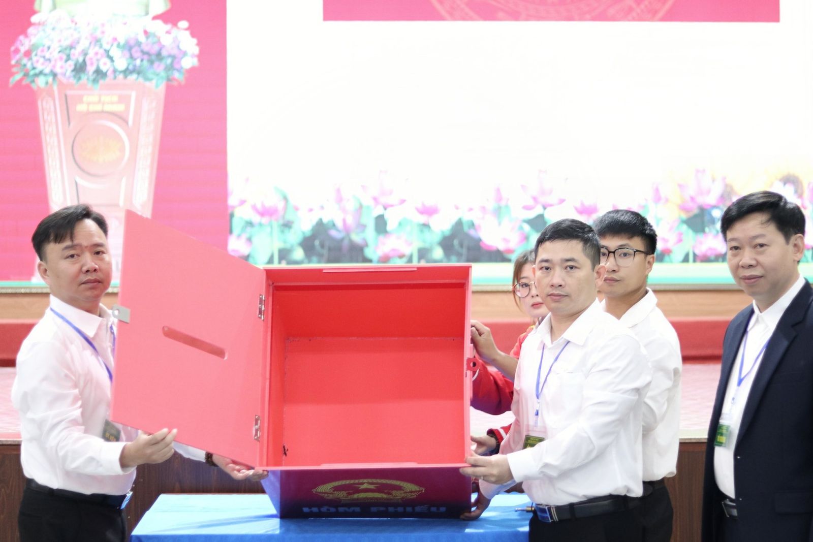 Tổ bầu cử kiểm tra hòm phiếu.