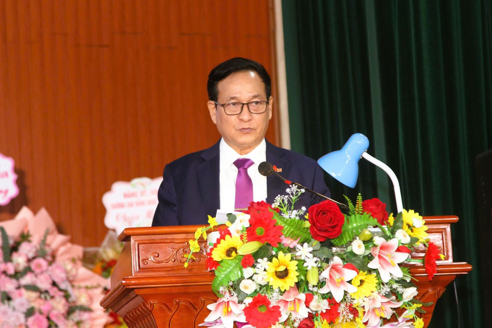 PGS.TS. Hoàng Văn Hùng, Giám đốc Đại học Thái Nguyên tặng hoa, chúc mừng tập thể Trường Cao đẳng Kinh tế – Kỹ thuật.