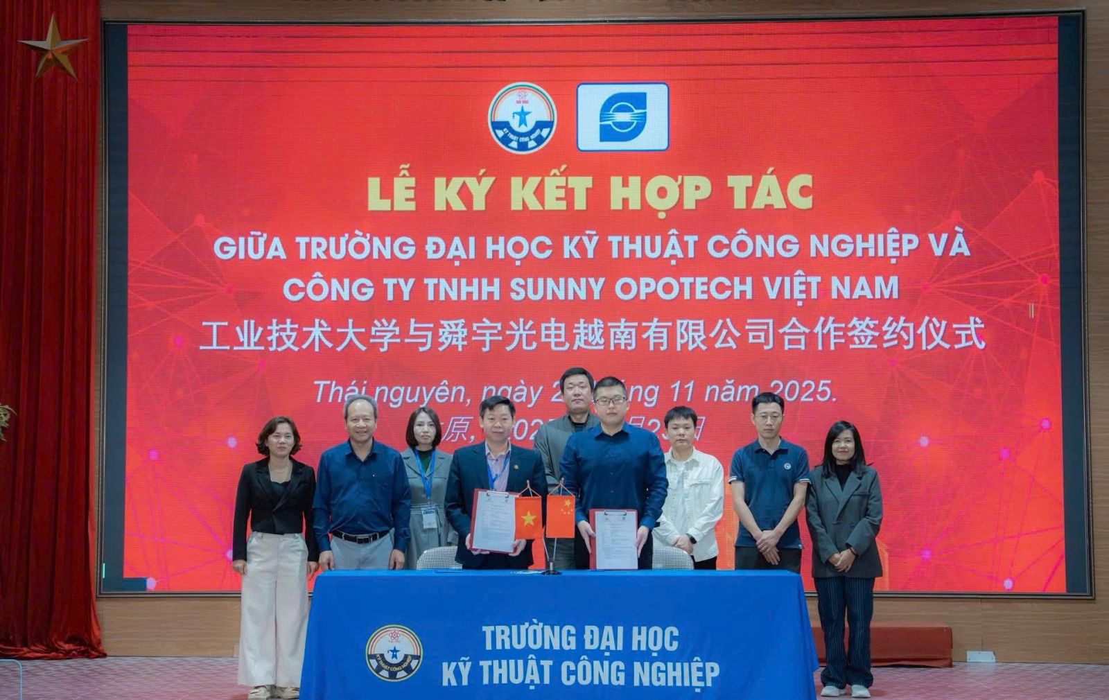 Lễ ký kết hợp tác giữa Trường Đại học Kỹ thuật Công nghiệp và Công ty TNHH Sunny Opotech Việt Nam.