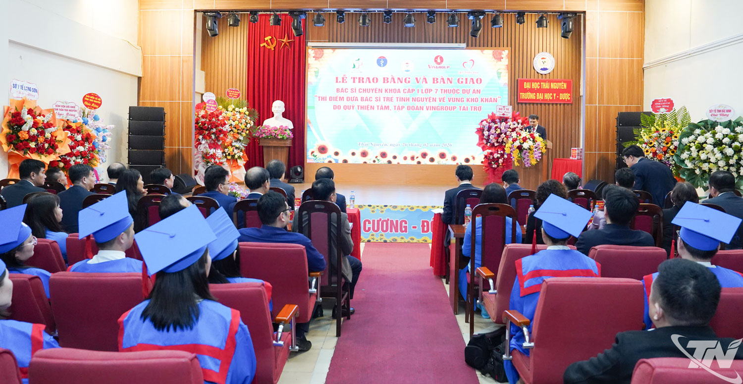 Phát biểu tại chương trình, PGS.TS Nguyễn Tri Thức chúc mừng các bác sĩ trẻ đã hoàn thành khóa học, đồng thời đề nghị mỗi cá nhân tiếp tục rèn luyện chuyên môn, giữ vững y đức, phát huy tinh thần trách nhiệm khi nhận nhiệm vụ tại cơ sở. Thứ trưởng Bộ Y tế ghi nhận và đánh giá cao vai trò của Trường Đại học Y - Dược Thái Nguyên trong đào tạo nguồn nhân lực y tế chất lượng cao cho khu vực trung du, miền núi phía Bắc; nhấn mạnh yêu cầu đổi mới chương trình theo hướng gắn đào tạo với thực hành lâm sàng, đáp ứng nhu cầu thực tiễn.