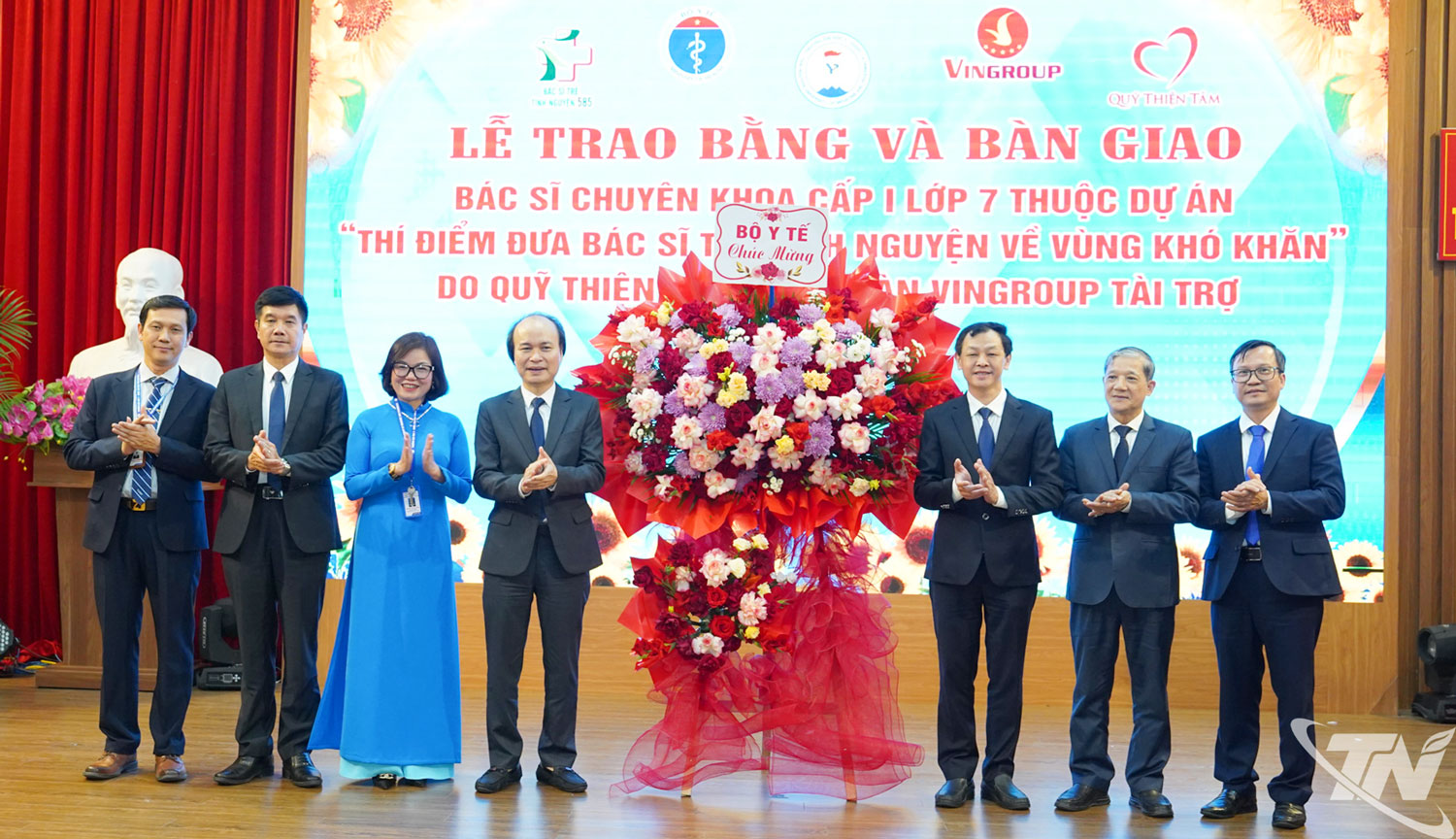 Tại buổi lễ, đại diện Nhà trường đã công bố quyết định công nhận tốt nghiệp và trao bằng cho 21 bác sĩ hoàn thành chương trình đào tạo chuyên khoa cấp I theo khuôn khổ dự án triển khai từ năm 2023. Ngay sau lễ trao bằng, các bác sĩ được bàn giao về công tác tại các địa phương còn thiếu nhân lực y tế như Thái Nguyên, Lạng Sơn, Cao Bằng, Lào Cai, Lai Châu và Bắc Ninh.