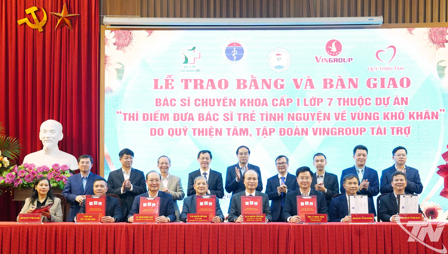 Lễ ký kết bàn giao bác sĩ chuyên khoa cấp I về các địa phương (Ảnh: Thảo Nguyên - Nguyên Ngọc)