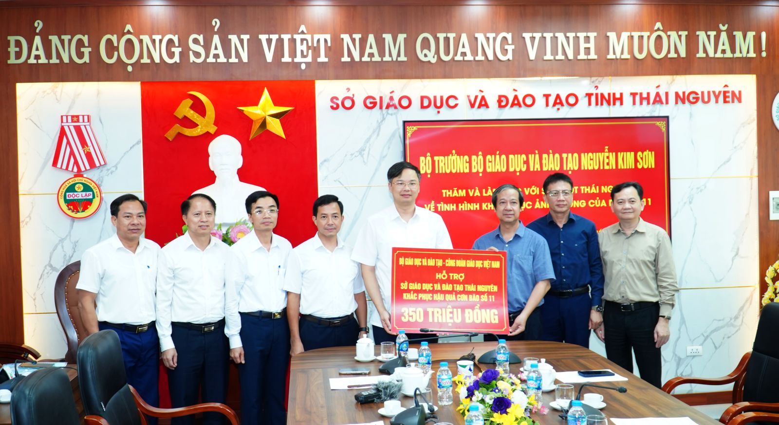 Đoàn công tác của Bộ Giáo dục và Đào tạo tặng Sở Giáo dục và Đào tạo tỉnh Thái Nguyên 350 triệu đồng hỗ trợ cho công tác khắc phục hậu quả lũ lụt.