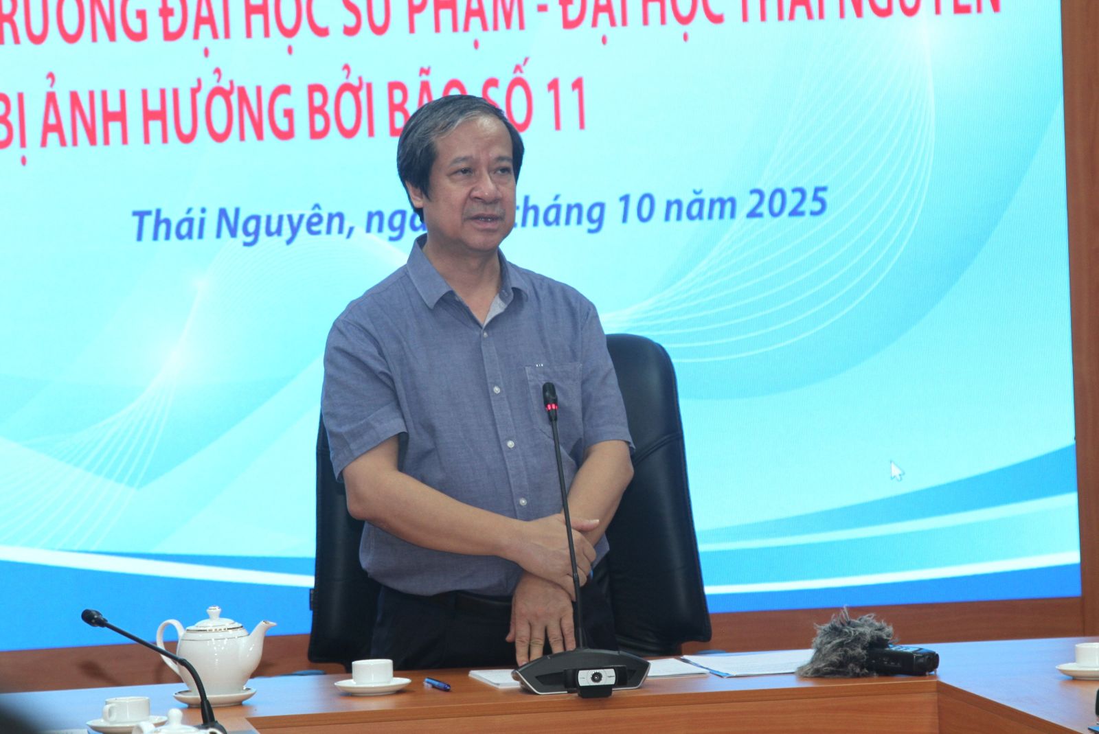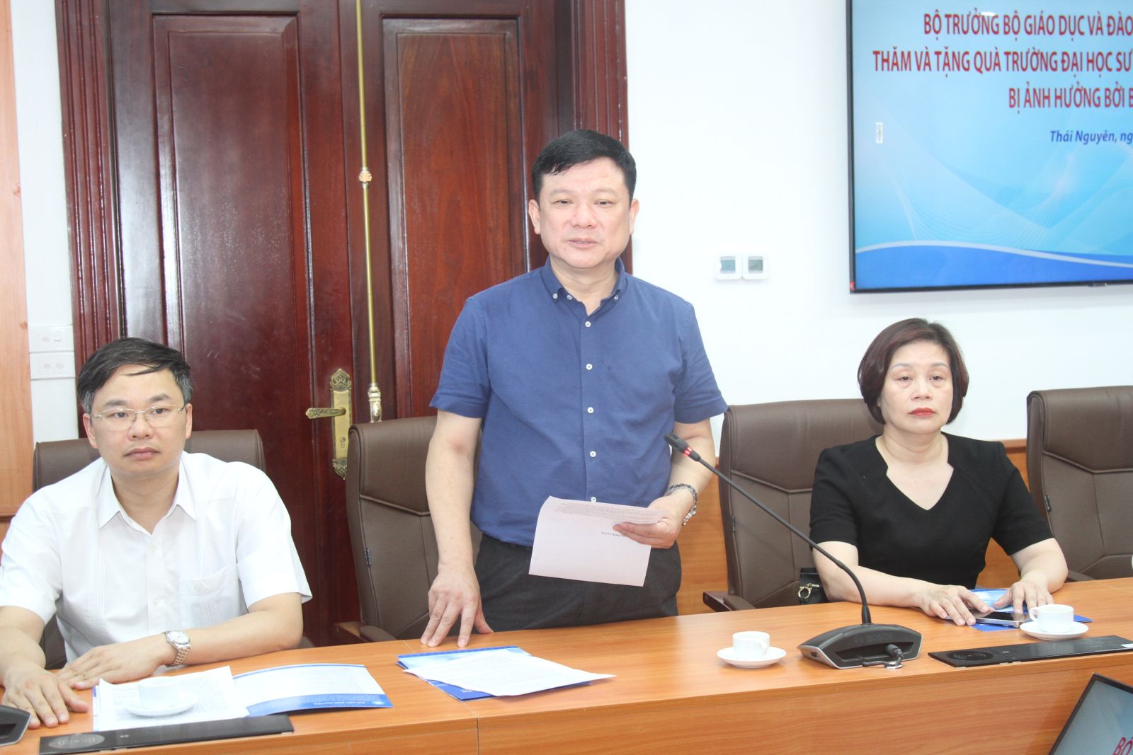 Đoàn công tác của Bộ trưởng Bộ Giáo dục và Đào tạo đã đến thăm, tặng quà tại Trường Đại học Sư phạm, Đại học Thái Nguyên. Tại buổi làm việc, PGS.TS Hoàng Văn Hùng, Giám đốc Đại học Thái Nguyên đã báo cáo với Bộ trưởng về công tác phòng chống thiệt hại; Công tác hỗ trợ và khắc phục hậu quả mưa lũ.