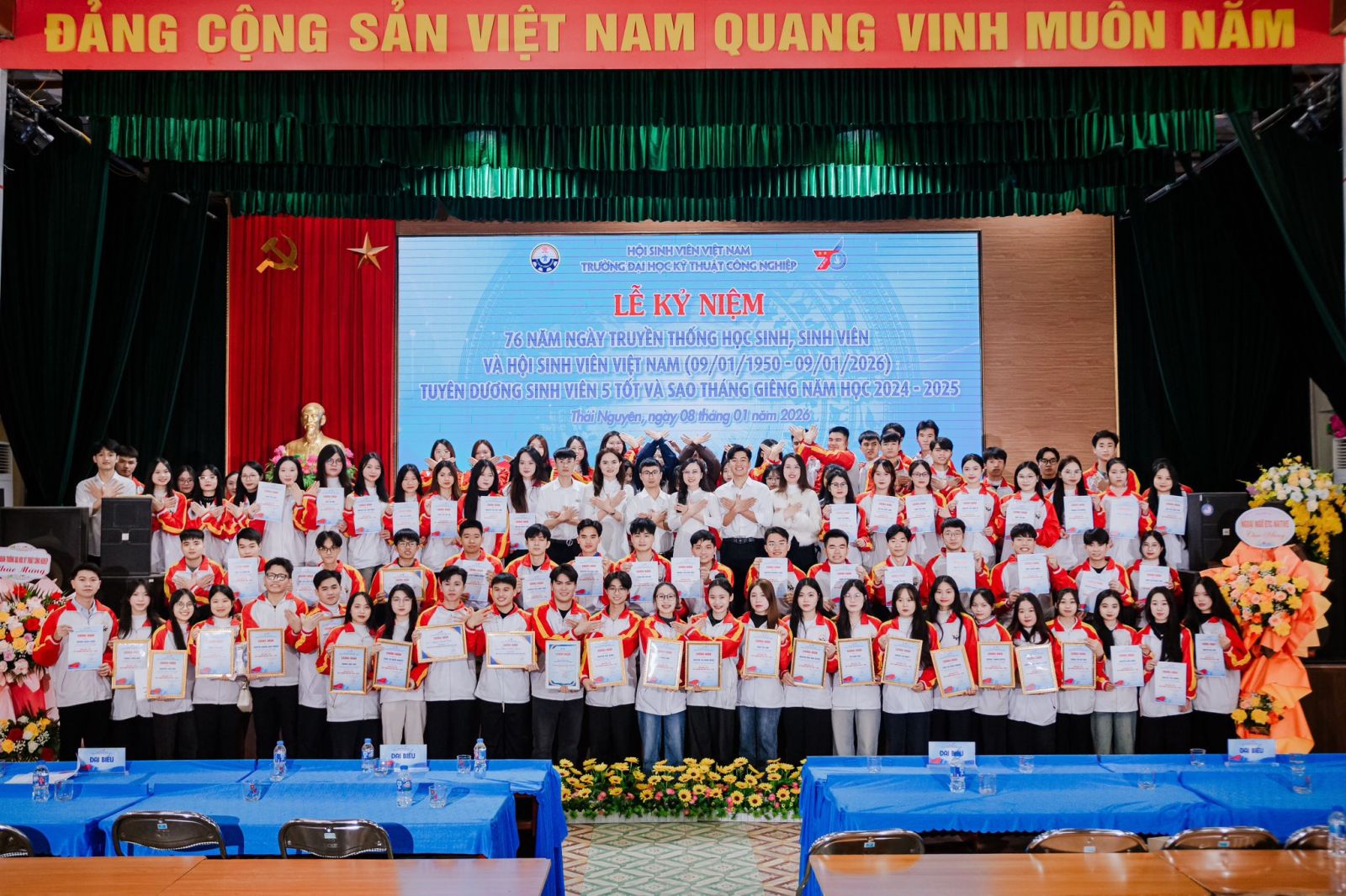 Lễ kỷ niệm 76 năm Ngày truyền thống Học sinh – Sinh viên tại Trường ĐH Kỹ thuật Công nghiệp, tuyên dương sinh viên tiêu biểu năm học 2024 – 2025 (Nguồn: TNUT)