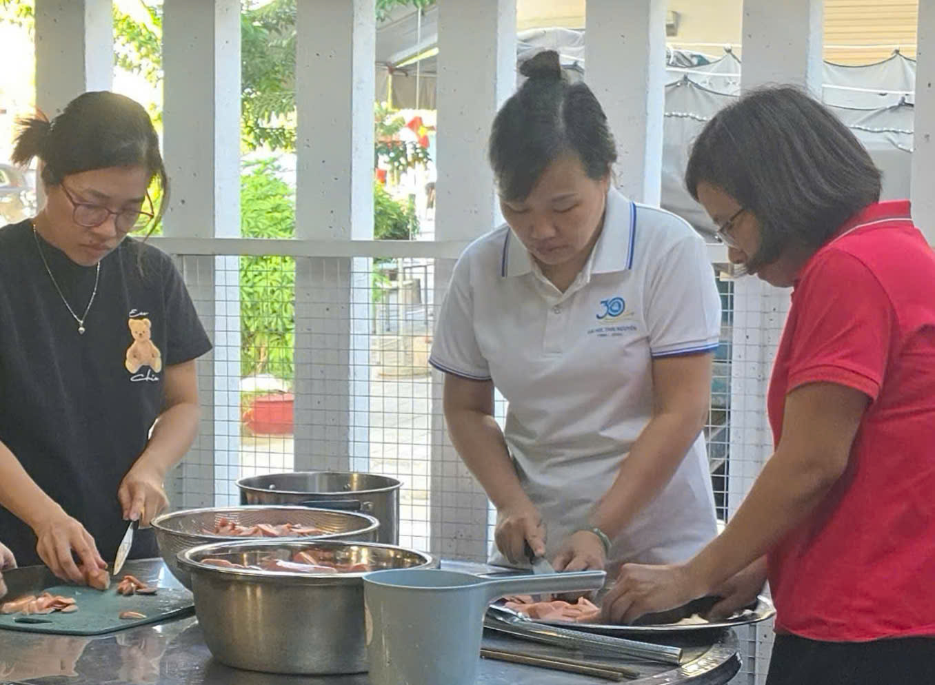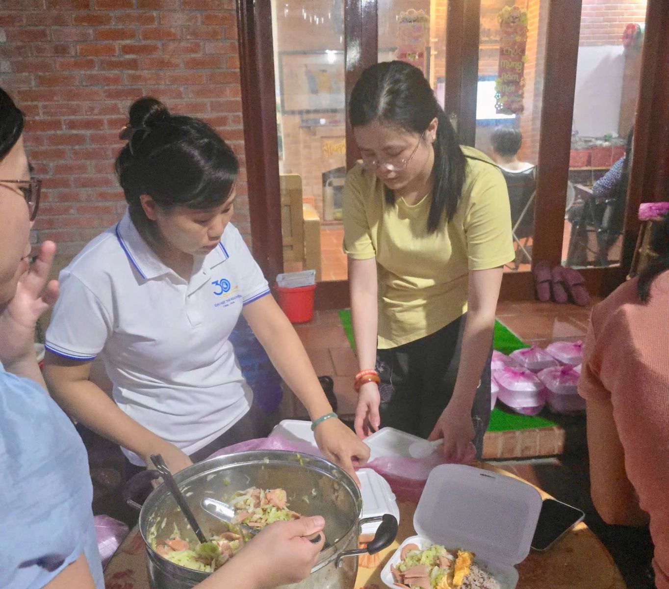 Ngay từ sáng sớm, gian bếp tạm được dựng ngay sân nhà một cán bộ bị ảnh hưởng sau mưa lũ. Dưới mái che đơn sơ, thầy cô, nhân viên và sinh viên cùng nhau nhóm bếp, người vo gạo, người chuẩn bị thức ăn, người chia từng suất cơm. Dù bận rộn, ai nấy đều làm việc hăng say, tiếng nói cười hòa lẫn mùi khói bếp khiến không khí trở nên ấm áp như trong một đại gia đình. Những suất cơm giản dị được trao tận tay các cán bộ, giảng viên và người dân đang dọn dẹp nhà cửa. Giữa ngổn ngang bùn đất, hình ảnh thầy trò Đại học Thái Nguyên cùng nhau nhóm bếp, sẻ chia từng bữa ăn đã trở thành điểm sáng đẹp đẽ – minh chứng cho tinh thần đoàn kết, nghĩa tình và trách nhiệm cộng đồng của tập thể Đại học Thái Nguyên.