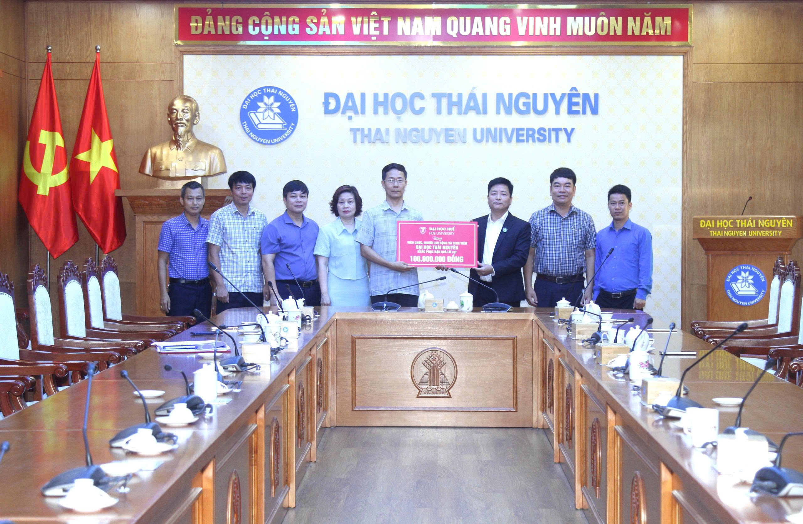 Đoàn công tác của Đại học Huế trao 100 triệu đồng hỗ trợ cán bộ, viên chức và sinh viên Đại học Thái Nguyên bị ảnh hưởng bởi bão số 11.