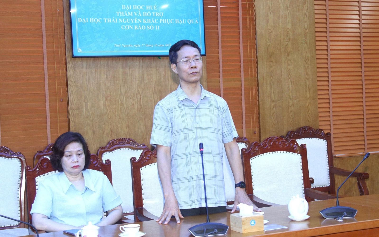 Chia sẻ với những khó khăn, thiệt hại của Đại học Thái Nguyên và các cán bộ, viên chức và sinh viên, TS. Bùi Văn Lợi, Phó Bí thư Đảng ủy, Phó Giám đốc phụ trách Đại học Huế cho biết: Ngay sau khi nắm bắt thông tin về tình hình thiệt hại do mưa bão tại tỉnh Thái Nguyên nói chung và Đại học Thái Nguyên nói riêng, Đại học Huế đã phát động ủng hộ với mong muốn góp phần hỗ trợ, tiếp thêm động lực để Đại học Thái Nguyên sớm khắc phục khó khăn. TS. Bùi Văn Lợi đã thăm hỏi, động viên và trao tặng 100 triệu đồng hỗ trợ cán bộ, viên chức và sinh viên Đại học Thái Nguyên bị ảnh hưởng bởi bão số 11.