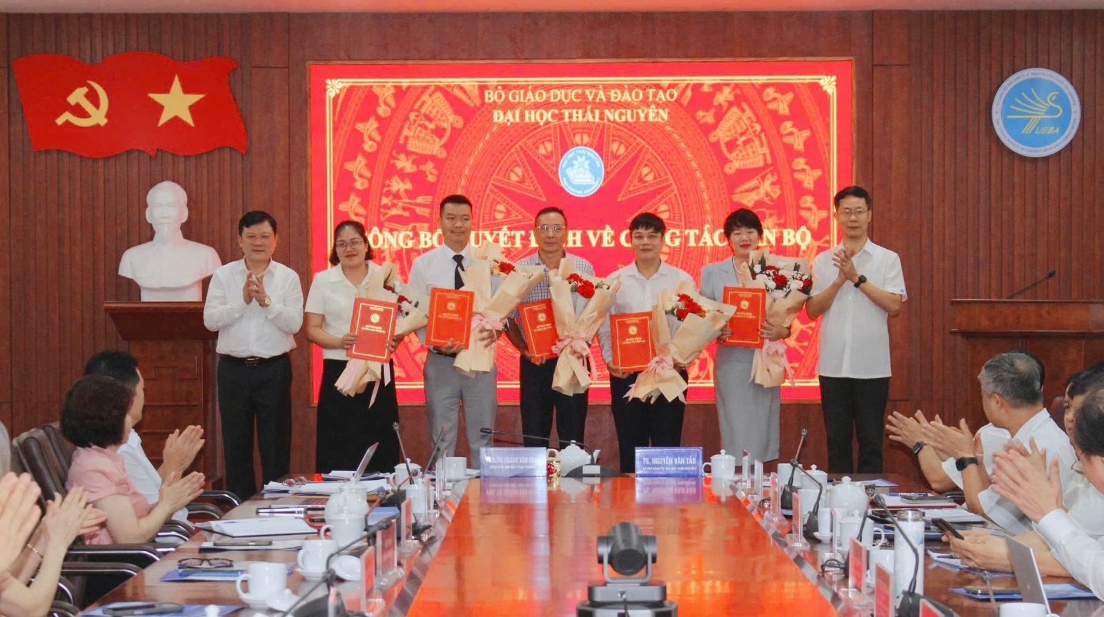 Cũng tại hội nghị, PGS.TS Nguyễn Xuân Trường, Trưởng ban Ban Tổ chức cán bộ, ĐHTN đã công bố các quyết định về việc bổ nhiệm, điều chuyển lãnh đạo văn phòng, ban chức năng, các đơn vị trực thuộc và thuộc ĐHTN: Quyết định điều chuyển, bổ nhiệm TS. Nguyễn Tất Thắng, Chánh Văn phòng ĐHTN giữ chức vụ Giám đốc Trung tâm Ươm tạo, Khởi nghiệp và Cung ứng nhân lực, ĐHTN. Điều chuyển, bổ nhiệm PGS.TS Hà Xuân Linh, Trưởng khoa Khoa Quốc tế, ĐHTN giữ chức vụ Chánh Văn phòng ĐHTN; giao Thạc sĩ Trần Lưu Hùng, Phó Trưởng khoa Khoa Quốc tế phụ trách Khoa Quốc tế cho đến khi có quyết định mới; Quyết định bổ nhiệm Trưởng ban Ban Khoa học Công nghệ và Đối ngoại, ĐHTN đối với TS. Mai Anh Khoa; Điều chuyển, bổ nhiệm TS. Đỗ Lệ Hà, Phó trưởng ban Ban Đào tạo và Quản lý người học giữ chức vụ Phó trưởng ban Ban Khoa học Công nghệ và Đối ngoại, ĐHTN; Điều chuyển, bổ nhiệm TS. Nông Hồng Hạnh, Phó Giám đốc phụ trách Trung tâm Nghiên cứu phát triển phụ nữ dân tộc thiểu số và miền núi, ĐHTN giữ chức vụ Phó trưởng ban Ban Khoa học Công nghệ và Đối ngoại, ĐHTN; kiêm nhiệm Phó Giám đốc phụ trách Trung tâm Nghiên cứu phát triển phụ nữ dân tộc thiểu số và miền núi, ĐHTN; Điều chuyển, bổ nhiệm TS. Nguyễn Đình Yên, Phó trưởng ban Ban Đào tạo và Quản lý người học giữ chức vụ Phó Chánh Văn phòng Đảng - Đoàn thể ĐHTN; kiêm nhiệm Phó Giám đốc Trung tâm Ươm tạo, Khởi nghiệp và Cung ứng nhân lực, ĐHTN.