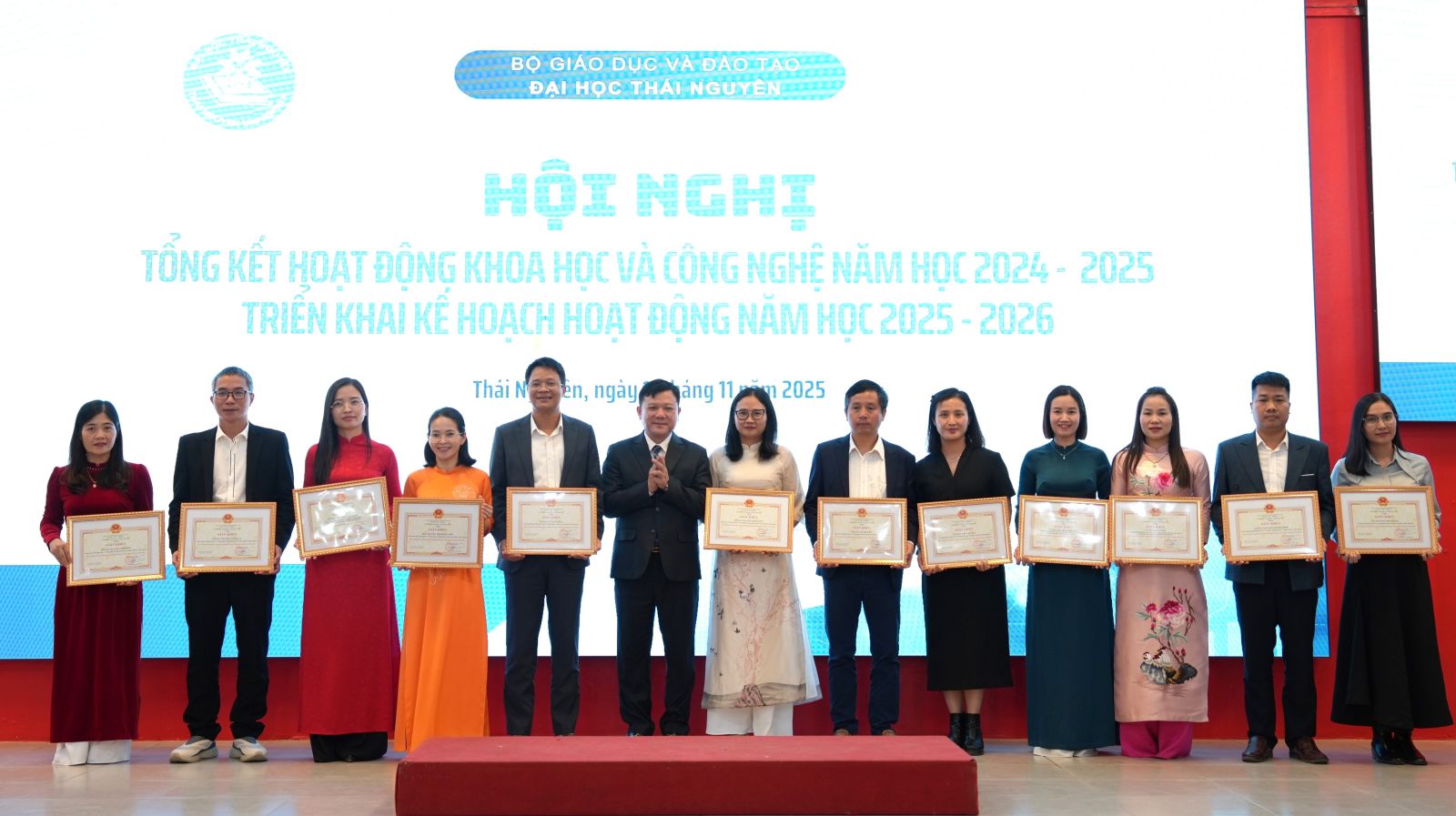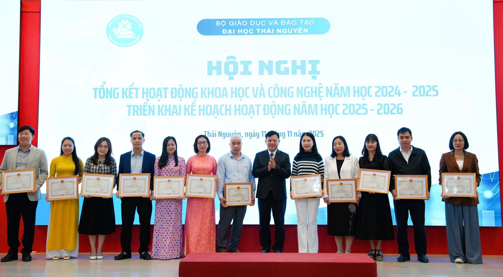 Nhân dịp này, Giám đốc Đại học Thái Nguyên đã tặng Giấy khen cho 3 tập thể, 43 cá nhân có thành tích xuất sắc trong hoạt động khoa học công nghệ năm học 2024-2025./.