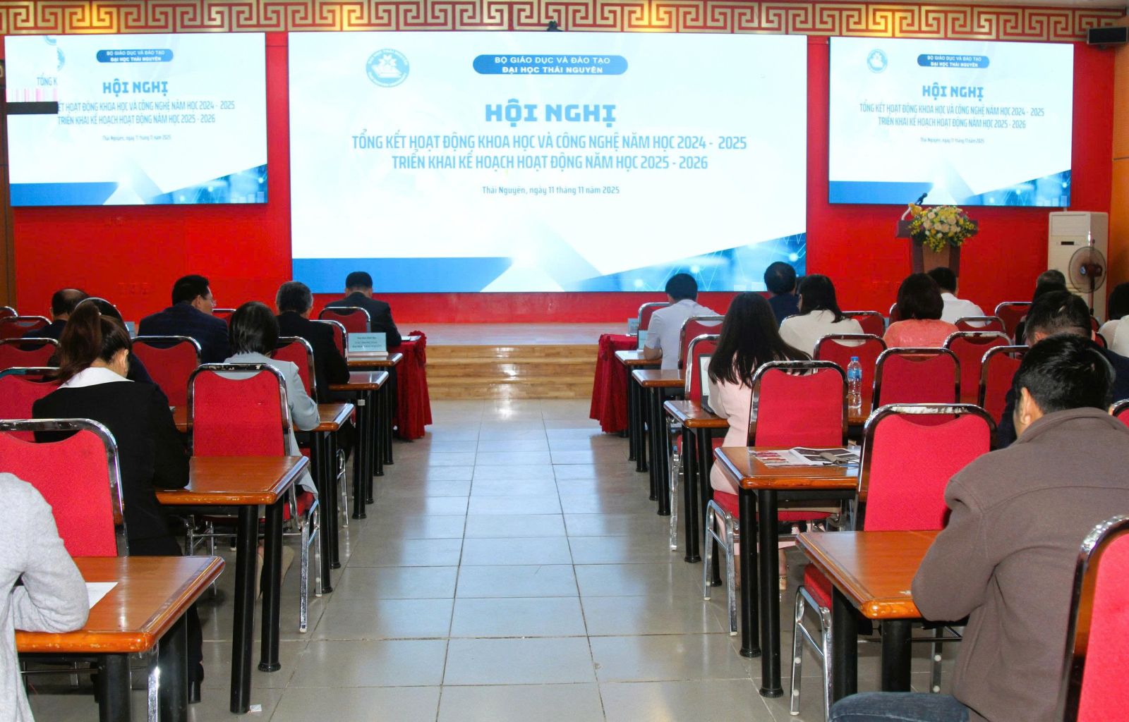 Sáng 11/11, Đại học Thái Nguyên tổ chức Hội nghị Tổng kết hoạt động khoa học công nghệ năm học 2024-2025 và triển khai kế hoạch hoạt động năm học 2025-2026. Dự hội nghị có PGS.TS Hoàng Văn Hùng, Phó Bí thư Đảng ủy, Giám đốc Đại học; đại diện lãnh đạo Văn phòng, Văn phòng Đảng - Đoàn thể, các ban chức năng, lãnh đạo các trung tâm, đại diện lãnh đạo các trường đại học, cao đẳng thành viên, đơn vị thuộc và trực thuộc; đại diện lãnh đạo các phòng/bộ phận phụ trách hoạt động khoa học công nghệ của các đơn vị, các nhà khoa học.