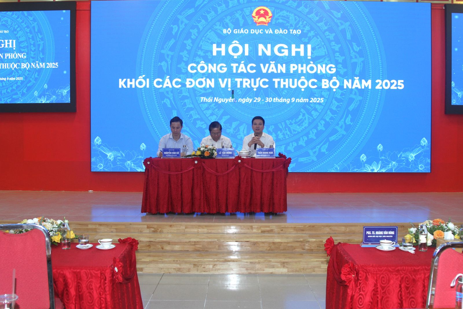 Phát biểu chỉ đạo tại hội nghị, Thứ trưởng Bộ Giáo dục và Đào tạo Lê Tấn Dũng đánh giá cao những kết quả công tác văn phòng khối các đơn vị trực thuộc Bộ đã đạt được trong năm 2024-2025. Để thực hiện thắng lợi Nghị quyết 71 và các nhiệm vụ trọng tâm của ngành trong thời gian tới, đồng chí đề nghị: Tiếp tục nâng cao chất lượng công tác tham mưu, hiến kế đảm bảo tính chiến lược, kịp thời, hiệu quả; Đẩy mạnh cải cách hành chính gắn với chuyển đổi số, lấy sự hài lòng của người dân và cơ sở giáo dục làm thước đo; tăng cường công tác truyền thông giáo dục, tạo sự đồng thuận trong xã hội; đẩy mạnh tuyên truyền về phổ cập mầm non, miễn giảm học phí, phát triển trường nội trú, bán trú; thúc đẩy đầu tư cơ sở vật chất cho vùng sâu, vùng xa, vùng đặc biệt khó khăn; xây dựng cơ chế phối hợp hiệu quả giữa các đơn vị; bồi dưỡng đội ngũ cán bộ văn phòng có chuyên môn sâu, kỹ năng mềm, năng lực công nghệ thông tin và tư duy đổi mới.