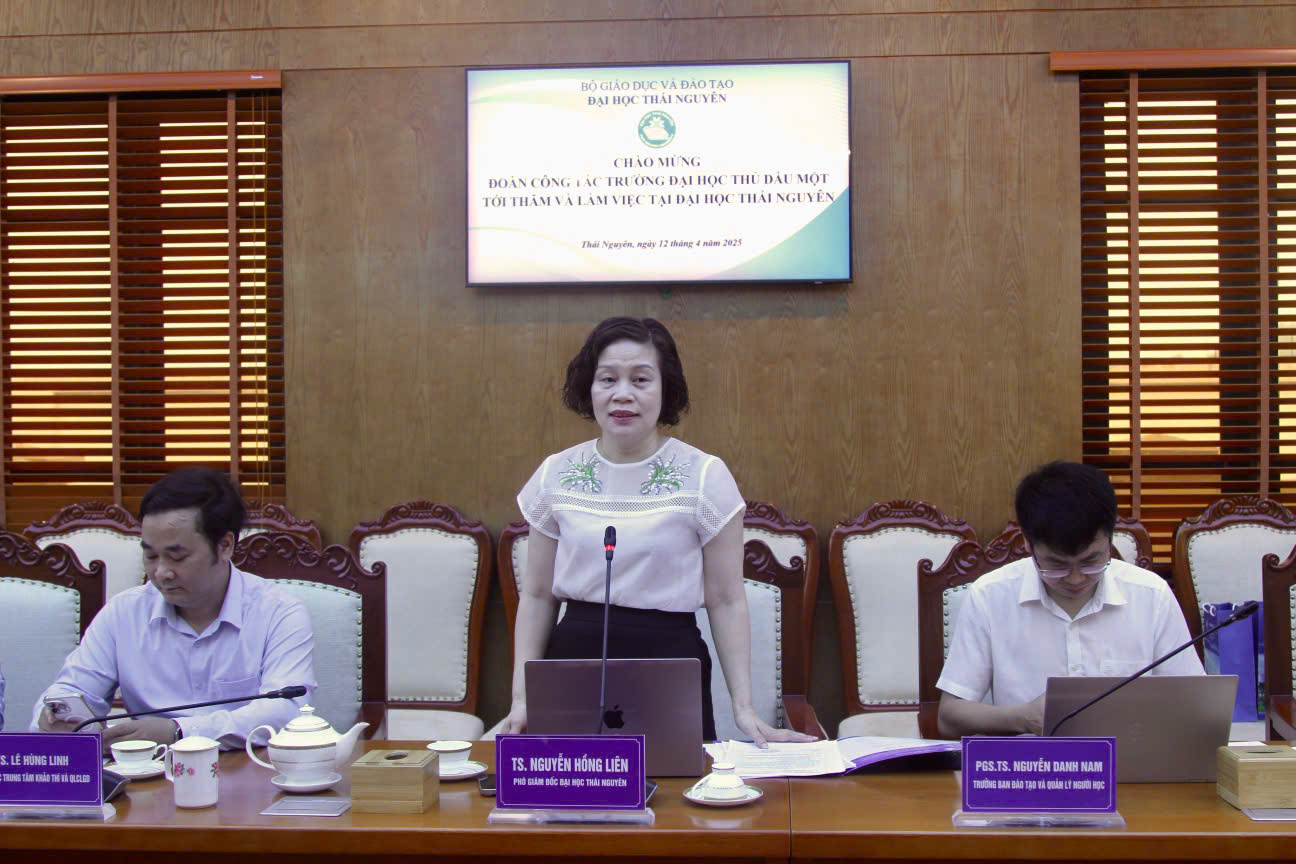 TS. Nguyễn Hồng Liên – Phó Giám đốc Đại học Thái Nguyên phát biểu tại buổi làm việc