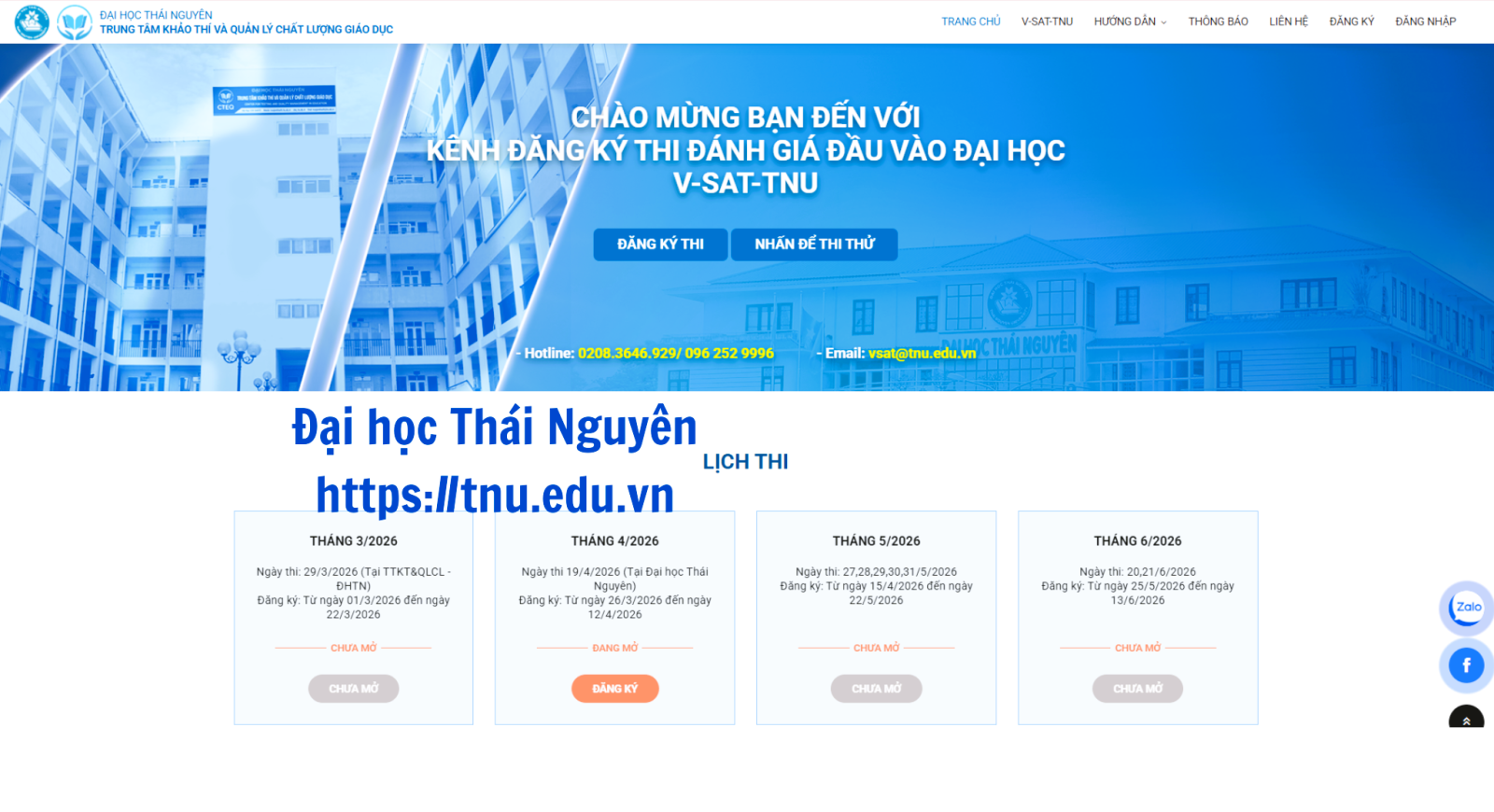 Các đợt tổ chức kỳ thi V-SAT-TNU năm 2026 được Đại học Thái Nguyên triển khai từ tháng 3 đến tháng 7